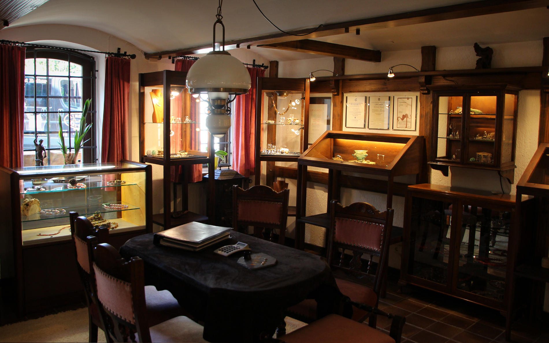 Ein stilvoll restaurierter und umgebauter Bauernhof bildet den geeigneten Rahmen für die Goldschmiede. Das Fachwerkgebäude vereint die Goldschmiede mit der Schmuckausstellung.